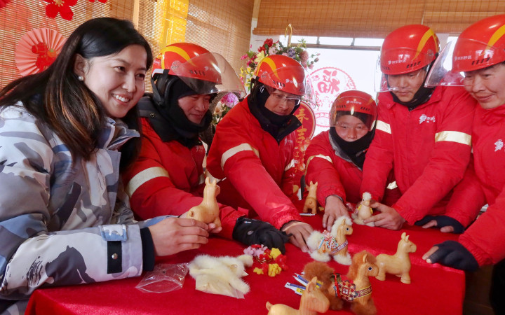 2月12日,颐和园,快递小哥们体验制作“特”小木偶。新京报记者薛珺摄