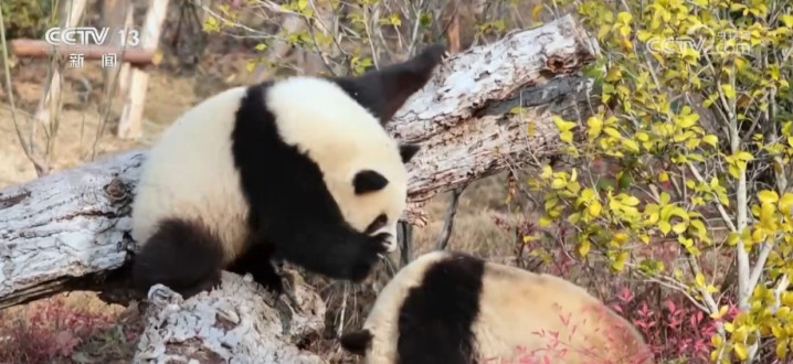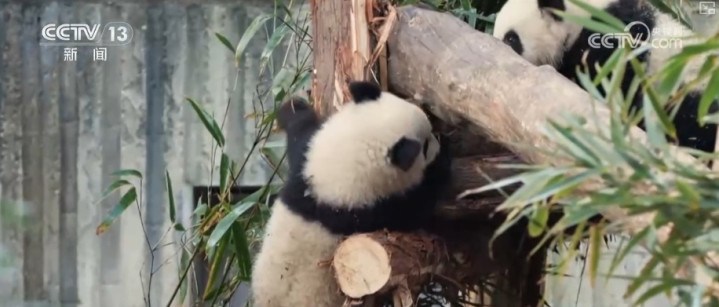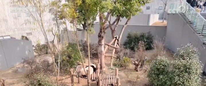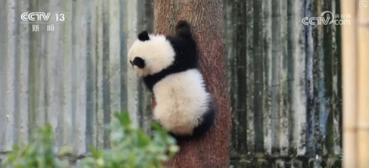 趁着姆妈“绩丽”寝息晒背这个当口,熊猫宝宝一滑眼就爬上了树。