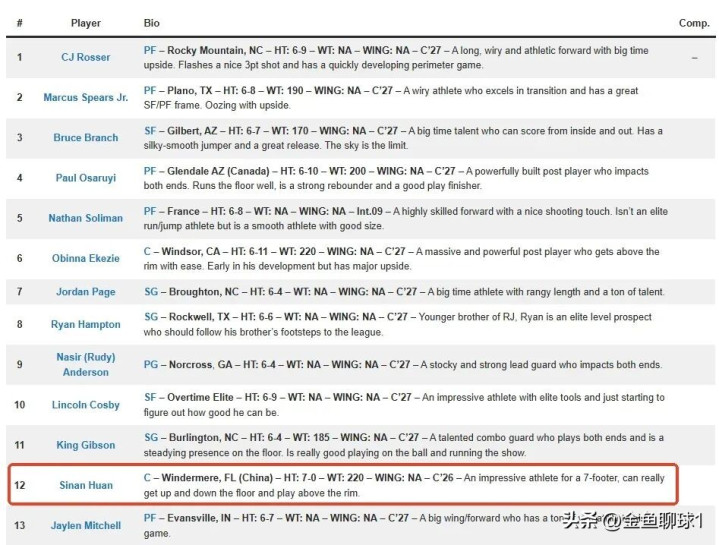 著名好意思国选秀媒体NBA Draft Room在前年的一期2028年NBA选秀考虑榜单上,将郇斯楠考虑为2028年NBA选秀大会的首轮第12顺位少壮。