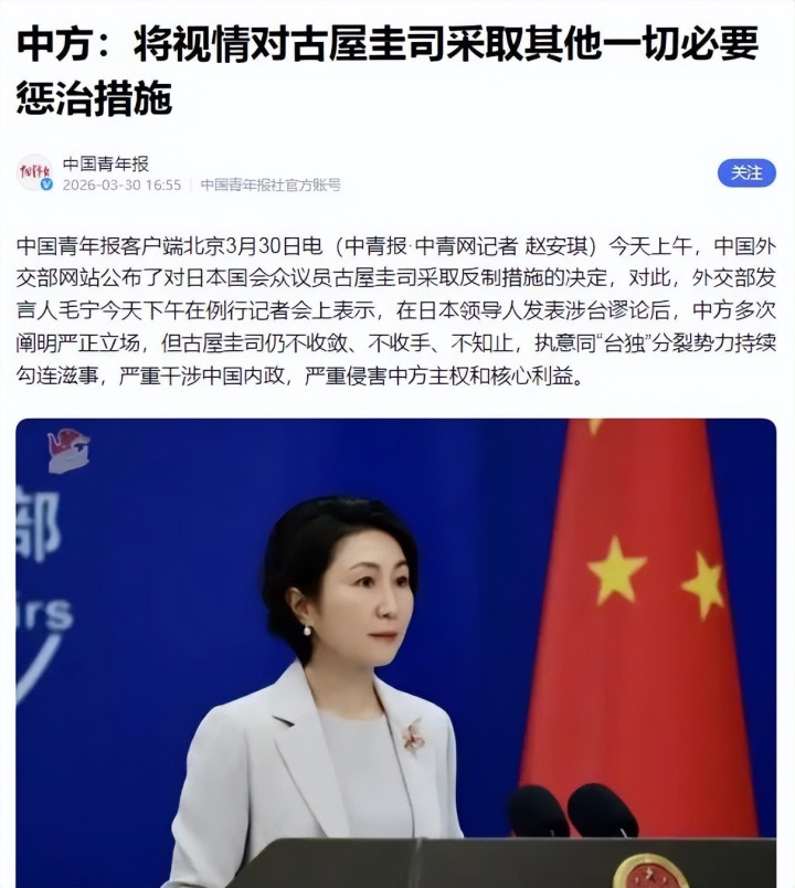 社交部发言东说念主毛宁在记者会上把话讲透了:日步履导东说念主发表涉台谬论后,中方屡次通知严正态度,可古屋圭司仍岂论束、不收手、不知止。毛宁还特别加了一句——中方将视情对其选拔其他一切必要的惩治措施。潜台词再默契不外:现在仅仅开胃菜。