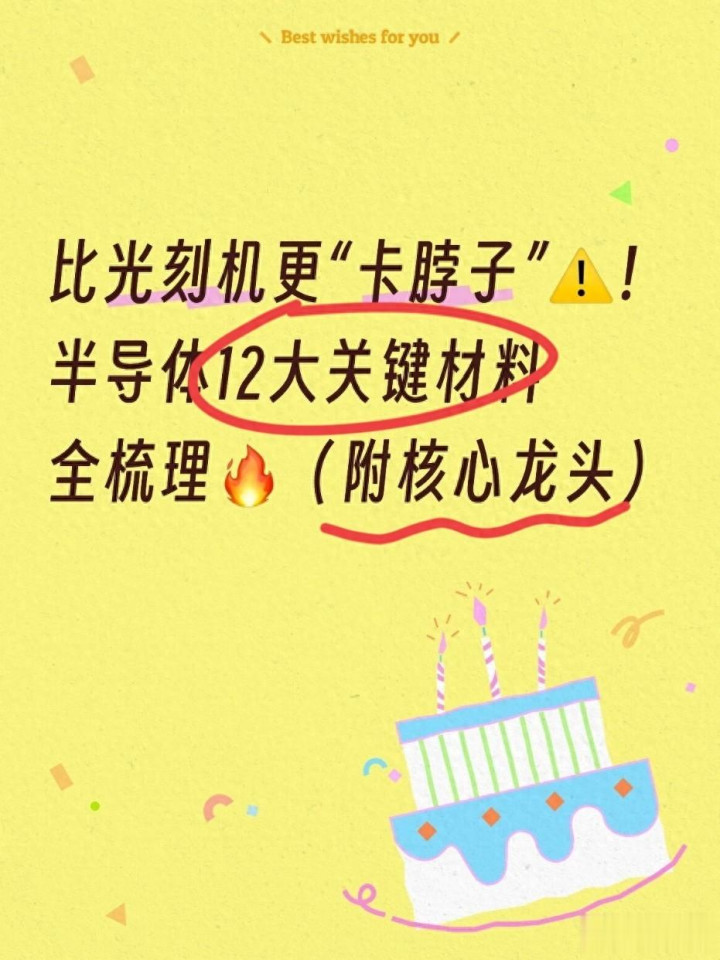 今天我就用最接地气的分析,把12大卡脖子半导体材料的中枢逻辑、紧缺近况、国产龙头一一讲透,帮你看懂这条被严重低估的黄金干线。