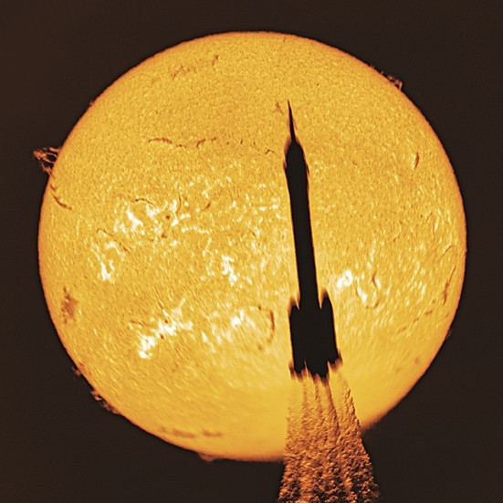 2025年11月25日,搭载神舟二十二号飞船的长征二号F遥二十二输送火箭得胜辐射。图为使用日珥镜拍摄的火箭凌日蓦地。新华社发