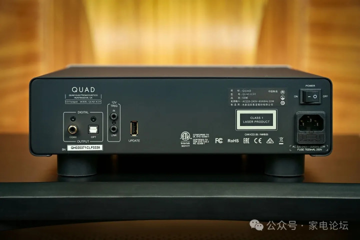 其合座尺寸300×300×101mm,分量仅5.37kg,与3功放大小周边,叠放或单独摆放均不繁重;CD托盘为荫藏式诡计,开合顺滑无噪音,机身后头接口规整,数字输出(光纤、同轴)与电源接口分区明晰,高品性接线端子保证信号传输褂讪。银色哑光颜色十分百搭,可活泼摆放于客厅电视柜、书斋书桌等位置,为家居增添轻奢典礼感。