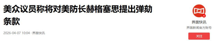 当地时期4月6日,好意思国国会众议员安萨里晓谕,她将提交针对好意思防长赫格塞想的标谤条目,事理是他“多次违背赴任誓词和对宪法的使命”,具体进展为“圣洁地危害好意思国军东说念主的生命安全,并多次犯下干戈罪孽”。
