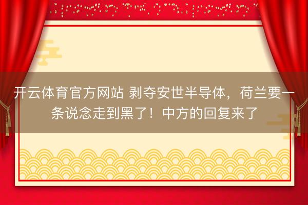 开云体育官方网站 剥夺安世半导体,荷兰要一条说念走到黑了!中方的回复来了