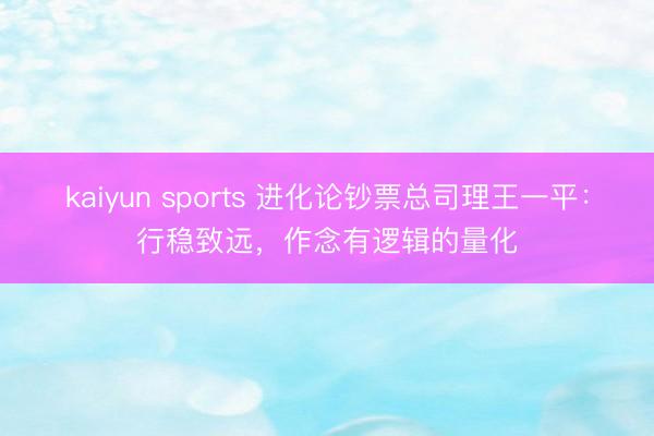 kaiyun sports 进化论钞票总司理王一平:行稳致远,作念有逻辑的量化
