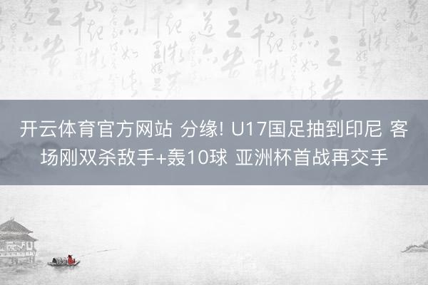 开云体育官方网站 分缘! U17国足抽到印尼 客场刚双杀敌手+轰10球 亚洲杯首战再交手