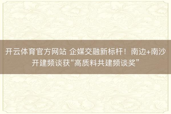 开云体育官方网站 企媒交融新标杆!南边+南沙开建频谈获“高质料共建频谈奖”