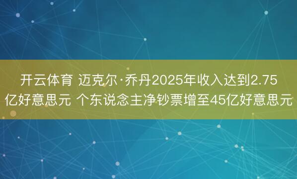 开云体育 迈克尔·乔丹2025年收入达到2.75亿好意思元 个东说念主净钞票增至45亿好意思元
