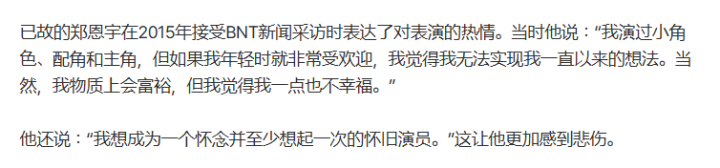 和朴寒星分歧后,郑恩宇的东说念主生似乎大事去矣。他生前曾在采访中暗示,我方年青的时辰很受接待,演过主角、副角和小脚色,但莫得结束一直以来的想法,诚然物资上很肥沃,但少许也晦气福,他想成为一个不错让东说念主怀念的演员。