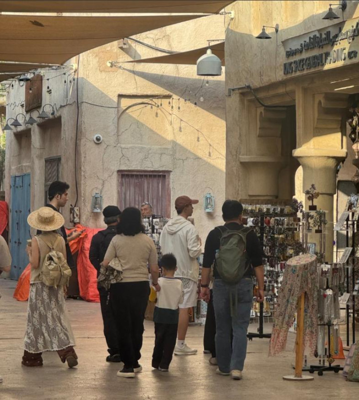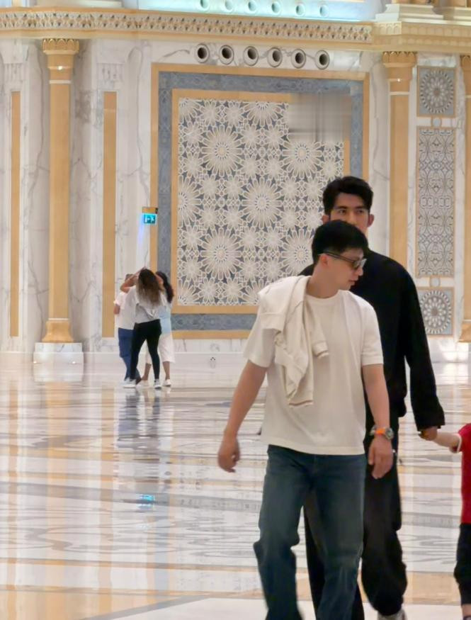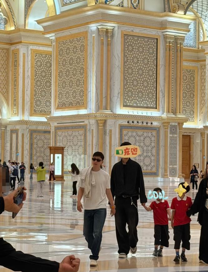 在2月12日又有网友偶遇了马龙一家东说念主来到了阿布扎比总统府参不雅,38岁的马龙看起来就像个小伙子,两鸳侣这同频看到有东说念主拍照的时势太有贯通了,马龙穿戴白T和牛仔裤超等帅气,两男儿又是同款衣服,极少无谓念念着如何穿搭了。