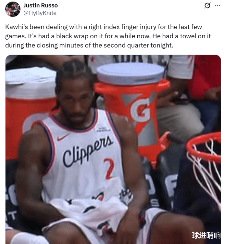 在哈登离队之后,小卡肩膀上的职守彰着变得更重,快船随队记者Justin Russo也曝出小卡试验上一直是在带伤作战,右食指伤势经久困扰着他。
