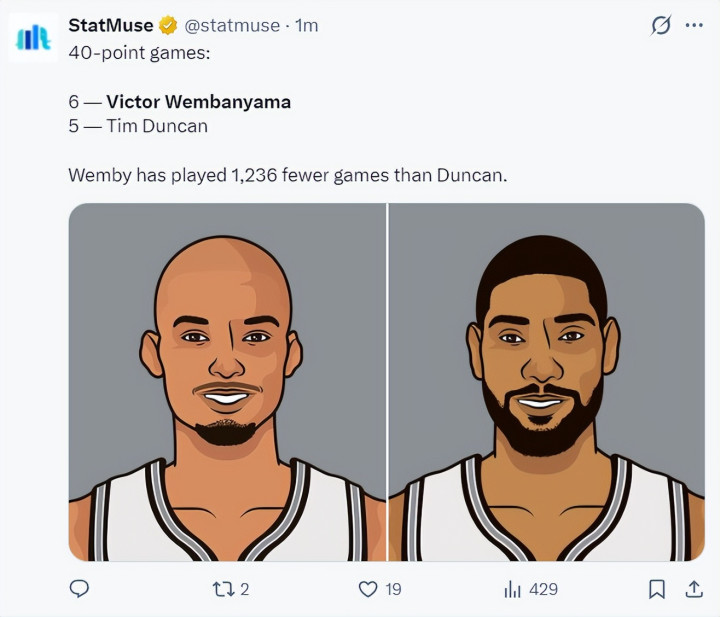 13.文班亚马生计第6次40+也曾越过邓肯;