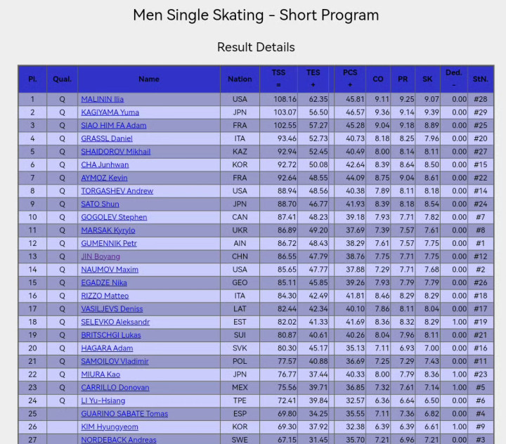 好意思国名将马里宁凯旋完成4F,3A等算作,干脆利落,开云体育官方网站通顺丝滑,校服了裁判与不雅众,得到108.16的高分,毫无争议排在第一。日本的健山优太103.07排在第二,法国选手第三。意大利、哈萨克斯坦与韩国分列第4到第6位。
