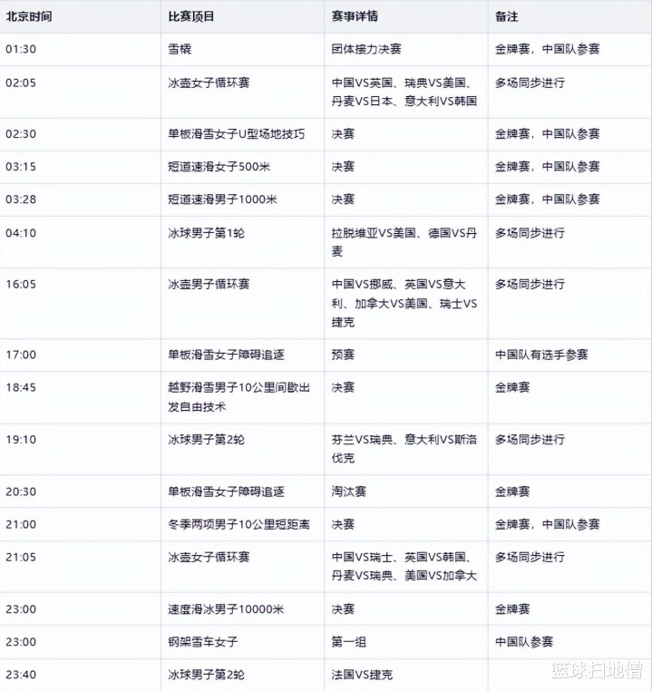 当日赛程分为凌晨、下昼及晚间三个时段,凌晨聚焦雪橇、短谈速滑等金牌赛事,下昼以冰壶轮回赛为主,晚间则演出越野滑雪、单板滑雪拦阻追赶、冬季两项等金牌争夺赛。同期,冰球须眉多场小组赛同步进行,各支队伍将为小组出线全力拼搏,赛事精彩禁锢错过。