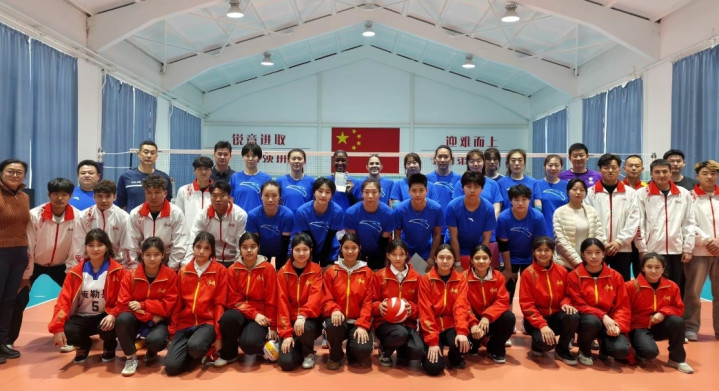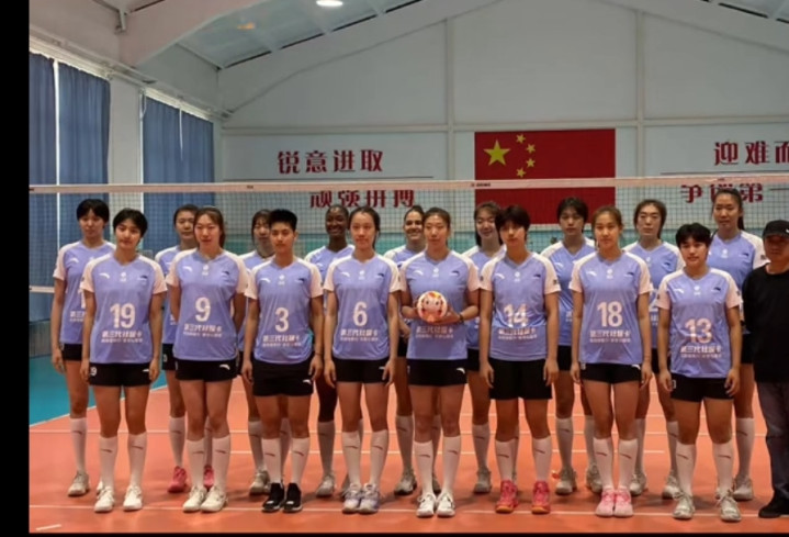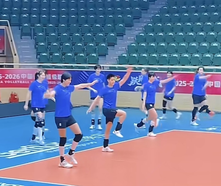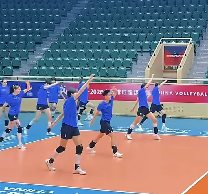 这是天津女排在天津东谈主民体育馆进行查验备战的最新像片。