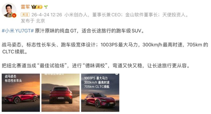 小米YU7 GT不仅能和新势力竞争,以致还不错往传统性能车的鸿沟试探。