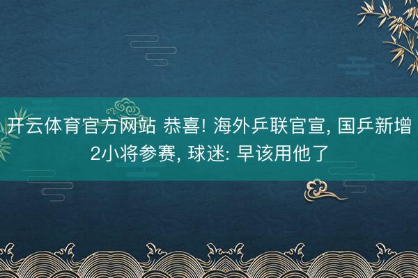 开云体育官方网站 恭喜! 海外乒联官宣, 国乒新增2小将参赛, 球迷: 早该用他了