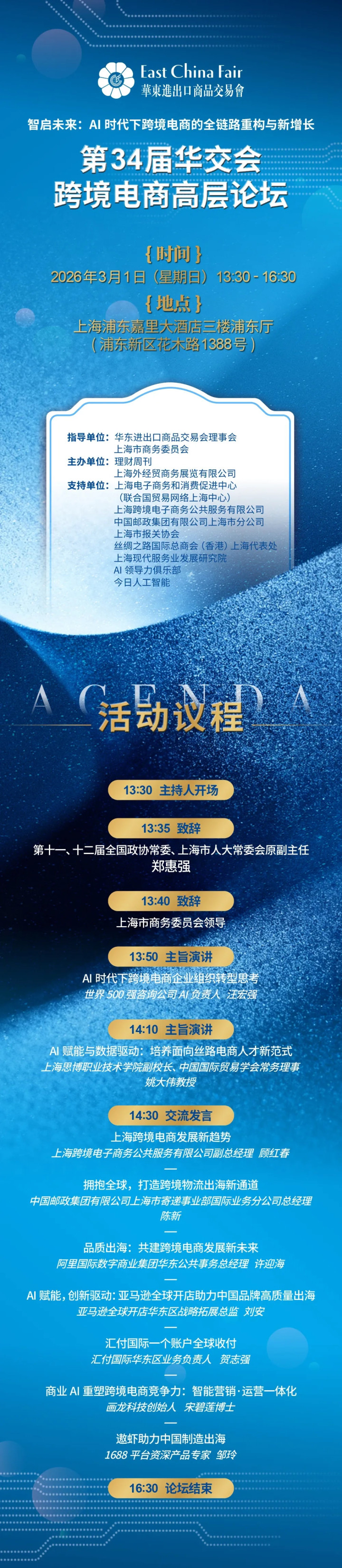 第34届华东收支口商品往复会行将于2026年3月1日至4日在上海新国外博览中心纷乱举办。行为本届展会的重头戏之一开云sports,第34届华交会跨境电商高层论坛将于3月1日下昼先行登场,拉开华交会精彩序幕。