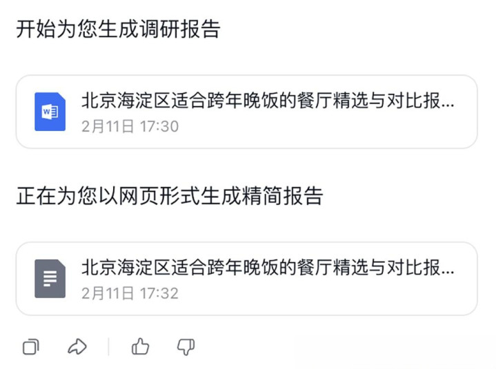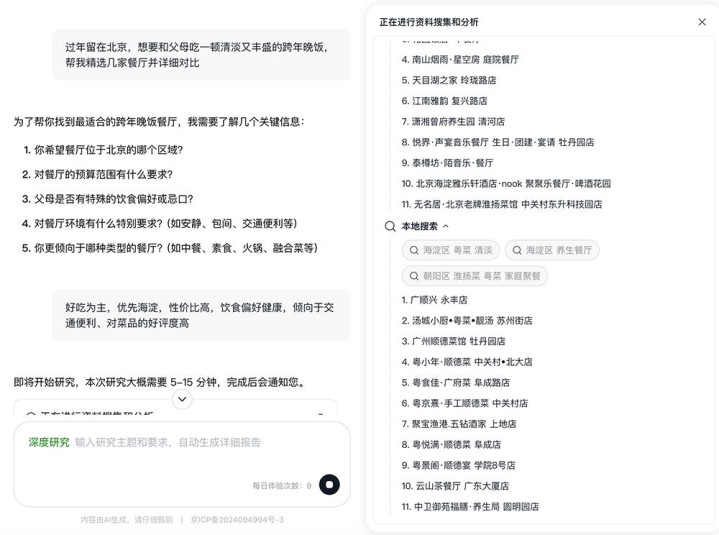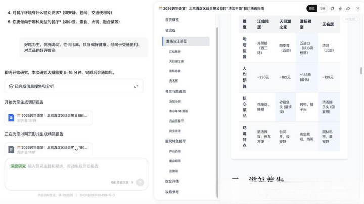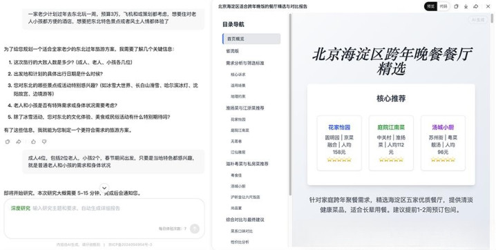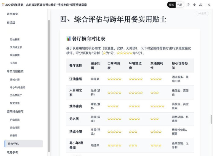 在“北京海淀带老东说念主跨年聚餐”的需求下,LongCat先通过多轮对话证实中枢诉求,再生成网页和Markdown两种景色的陈说,易游官方网站APP下载涵盖6家餐厅的横向对比,以至包括适老性评估、泊车提议等细节。