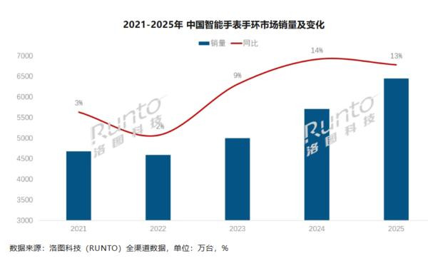 洛图科技预见,2026年中国智高腕表手环建立线上线下全渠谈的销量有望冲破7000万台,同比飞腾约8.5%。