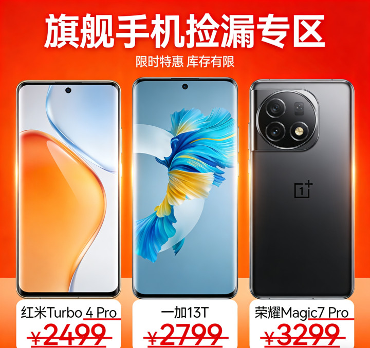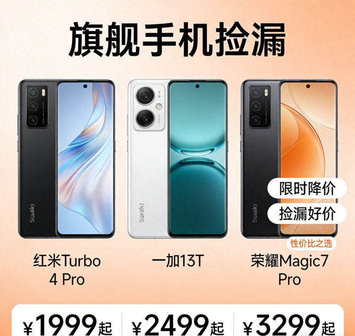 红米Turbo 4 Pro主打极致性价比,适合预算有限、追务实用的用户;一加13T主打小屏旗舰,适合偏疼单手操控、便联袂感的用户;荣耀Magic7 Pro主打高端万能,适合追求顶级体验、商务办公的用户。