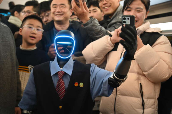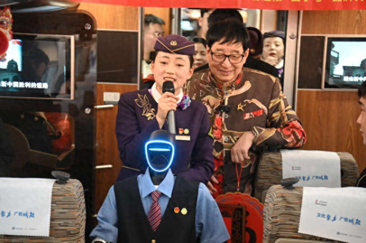这款名叫“福兴”的智能机器东说念主,和乘务组通盘在车厢门口立岗,接待游客搭车、巡缉车厢,还会陪同小提琴、越剧等扮演穿梭在车厢里,给游客奉上定制的福字和对联,为春运路径增添了不少暖意。