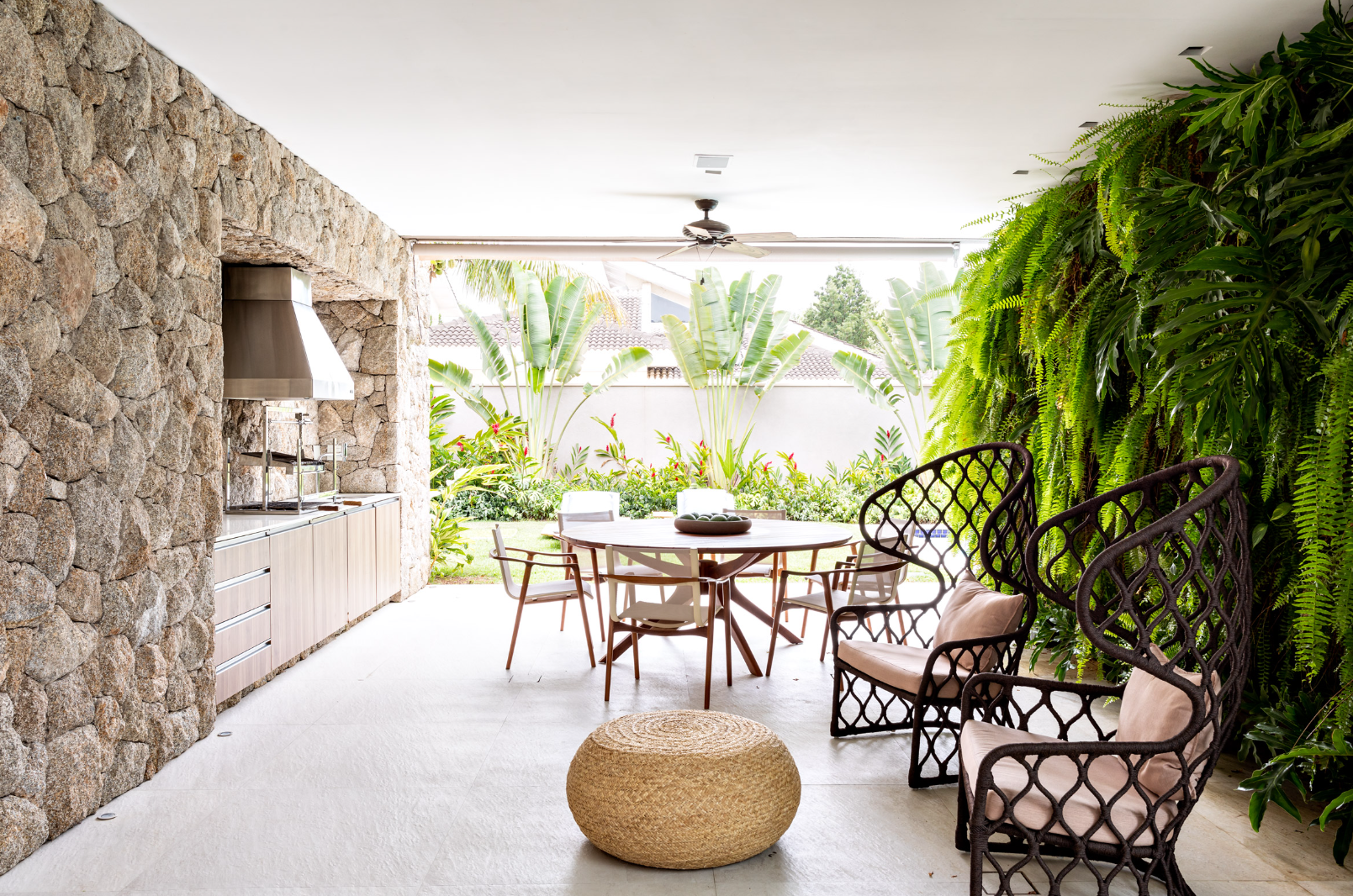 让绿植来绝对地界说一个家居立场,中枢是将绿植四肢空间的主角,让视野所及之处皆是广宽的绿意。在客厅、阳台、以致过谈,皆挑升志地叮属植物。高处用吊挂植物,比如佛珠吊兰;中层用落地大植物,如琴叶榕、龟背竹;低处则用小盆栽填充。