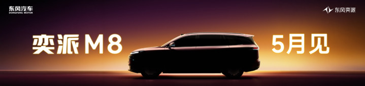 年内将推出三款全新车型,全系搭载华为乾崑智能汽车科罚决策,首款大六座SUV——东风奕派M8将于5月首发登场。