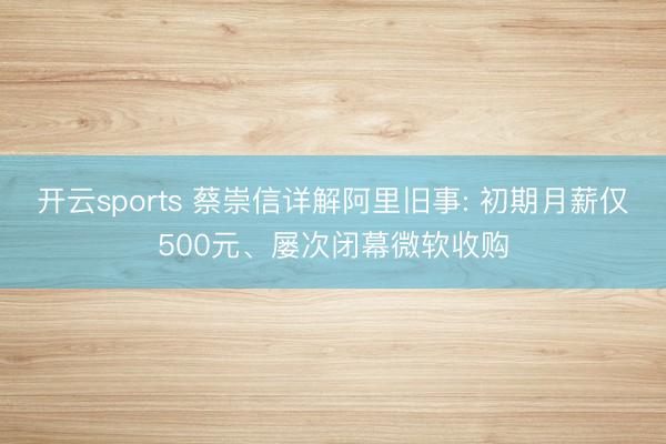 开云sports 蔡崇信详解阿里旧事: 初期月薪仅500元、屡次闭幕微软收购