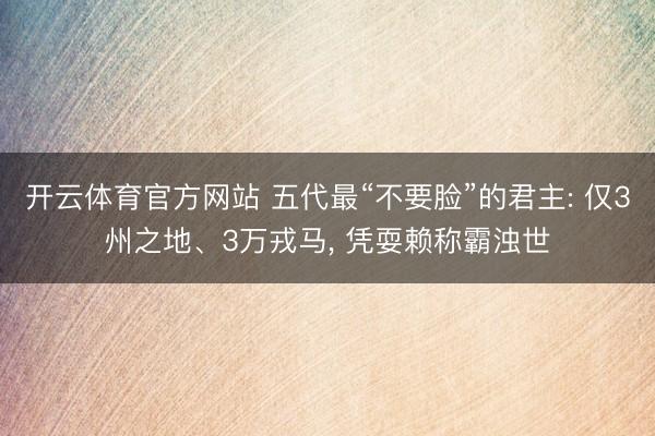 开云体育官方网站 五代最“不要脸”的君主: 仅3州之地、3万戎马, 凭耍赖称霸浊世