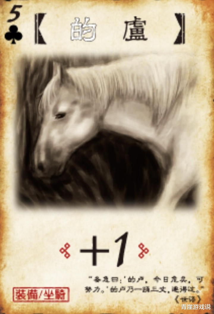 的卢是著名历程第二的坐骑,群众都知谈的卢妨主,何况马跃檀溪说的即是的卢。的卢的主东谈主是刘备,自后送给了庞统,落凤坡下身骑的卢的恰是庞统。
