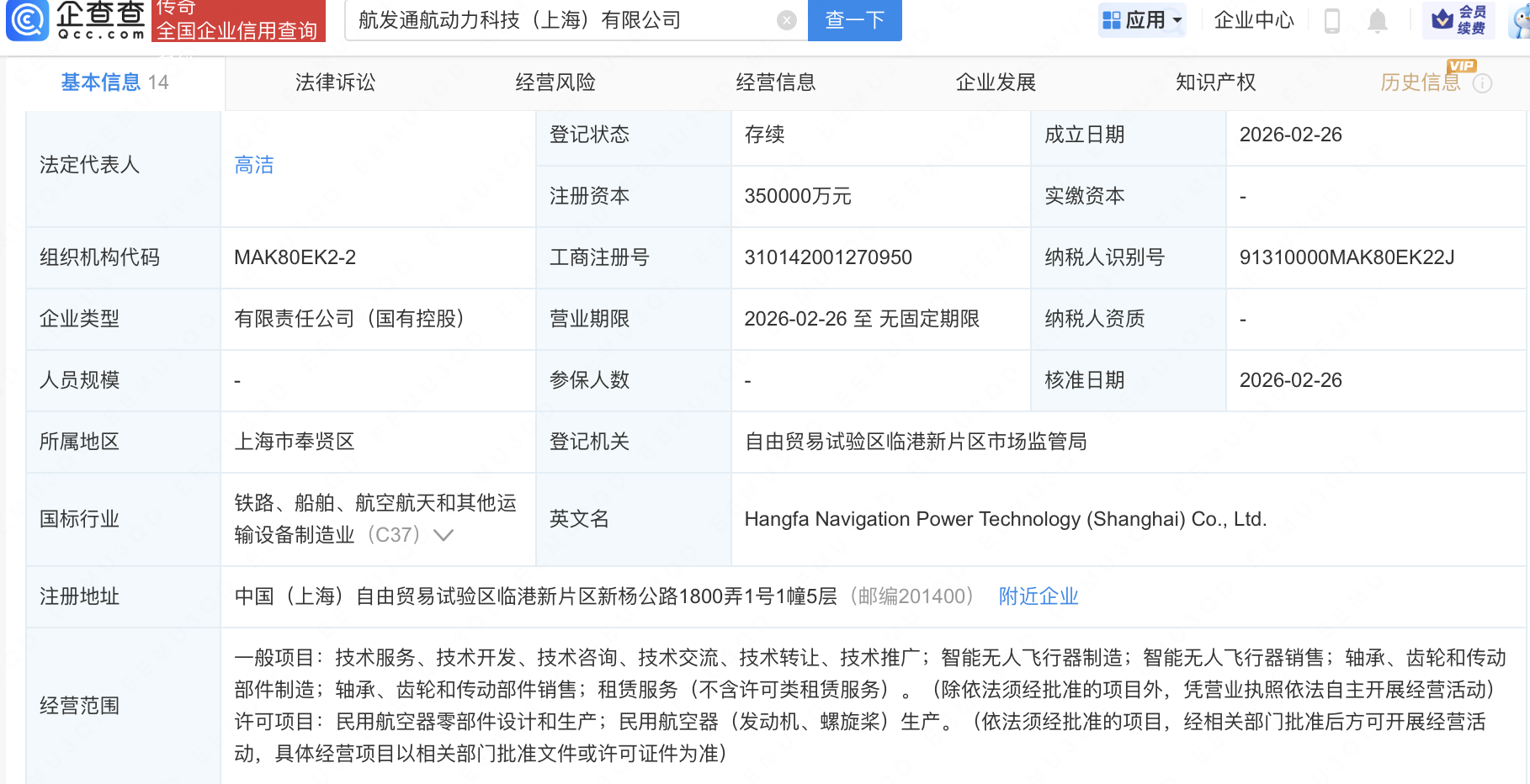 开云体育官方网站 航天彩虹、中无东谈主机等建设能源科技公司,注册老本35亿