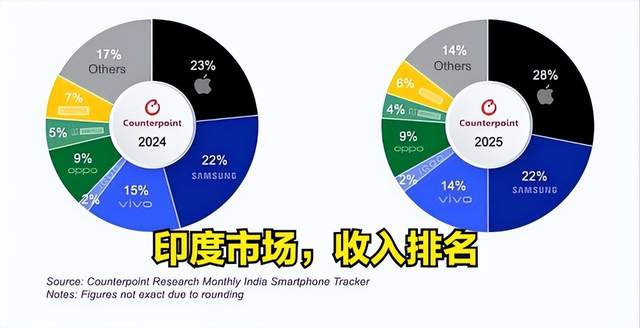 直到2025年,苹果才算是初次销量上排在印度的前五名。
